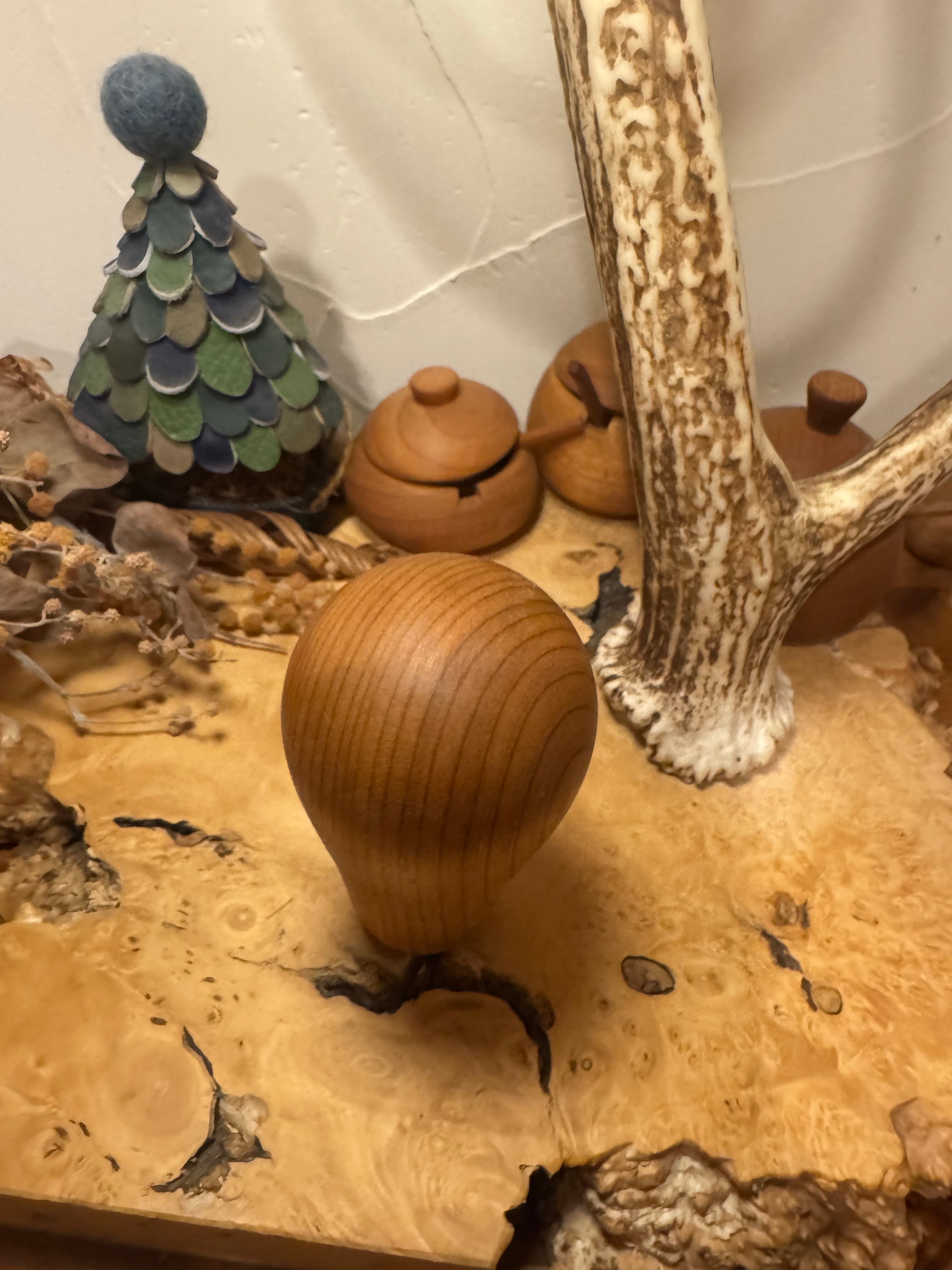 丸型の球体デザインで、手にすっと馴染むフィット感を実現しました。自然な木の質感です。
